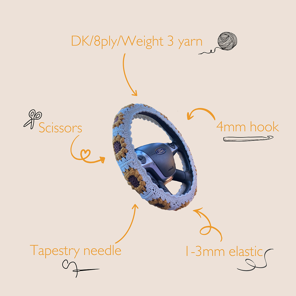 Sunflower Steering Wheel Cover - PDF crochet pattern